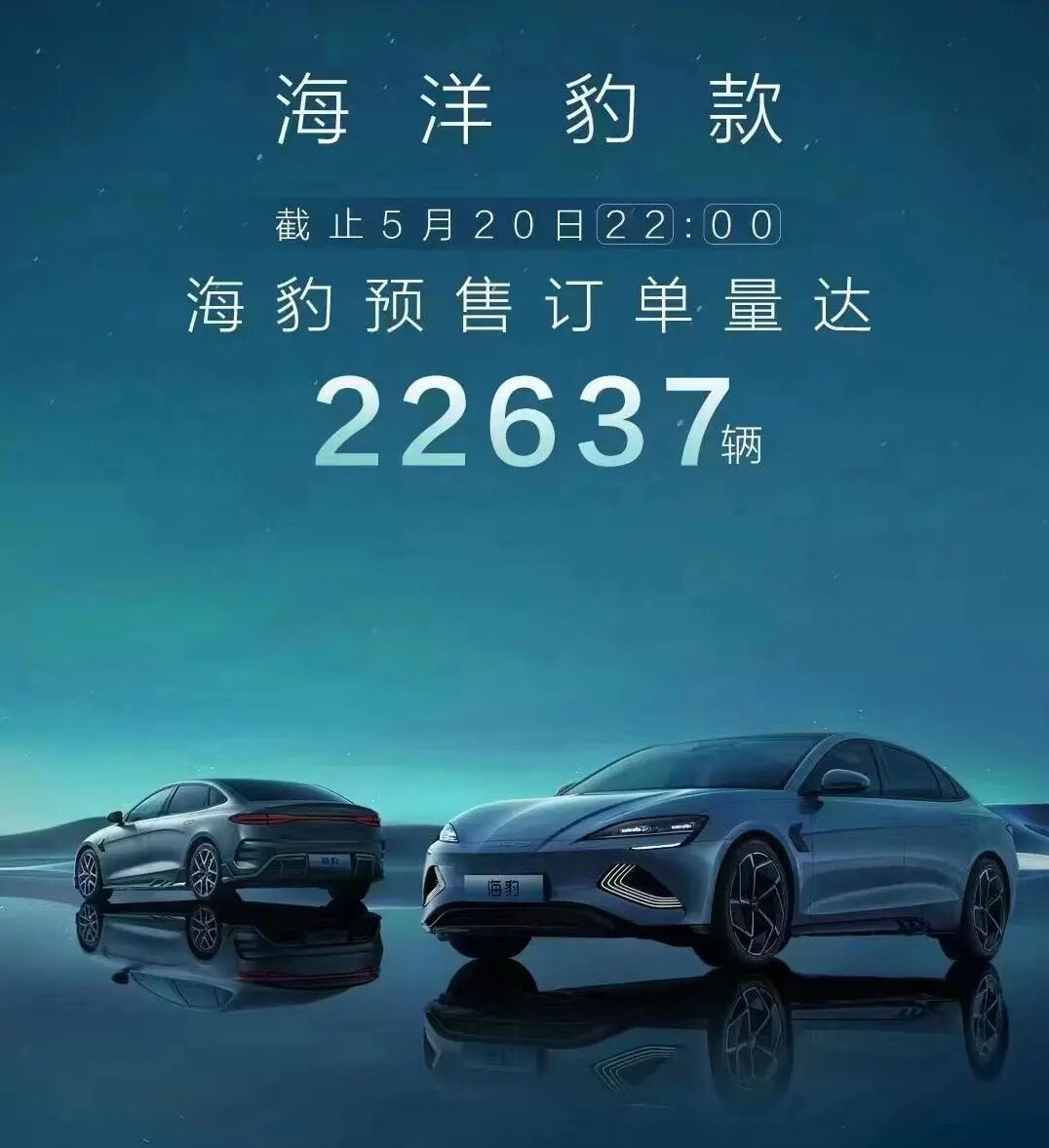 另据消息称,截止到5月20日22点,比亚迪海豹的订单量已经达到了22637辆。