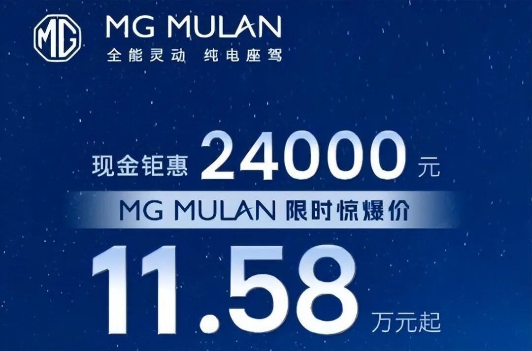 为了提升在国内市场的销量,近日上汽名爵官方对MG MULAN进行了官降,降幅2.4万元,官降后11.58万元起