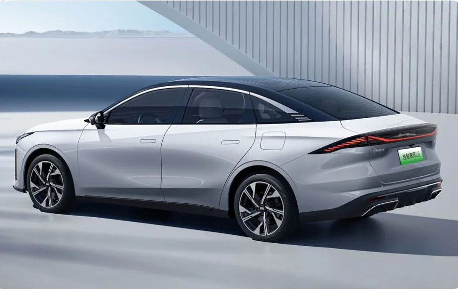 在外观上,银河L6采用了跟银河L7相同风格的设计,配备有贯穿式的LED灯带,车身配色也是以黑白双拼色为主。为了更好的突出形成的运动气质,车身侧面采用了溜背的造型设计,风阻系数低至0.26cd。外后视镜也采用了熏黑的处理,配备有隐藏式的门把手。