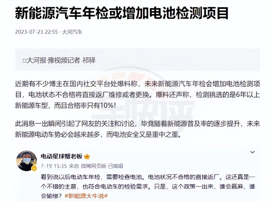 这两天,网上关注比较高的一件事情就是关于新能源车年检将会增加电池检测项目这一传闻。
