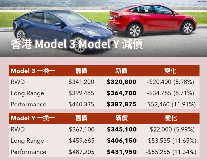 7月31日,特斯拉宣布将会在8月4日下调香港地区Model 3和Model Y部分车型的售价,最高降幅为11.9%。