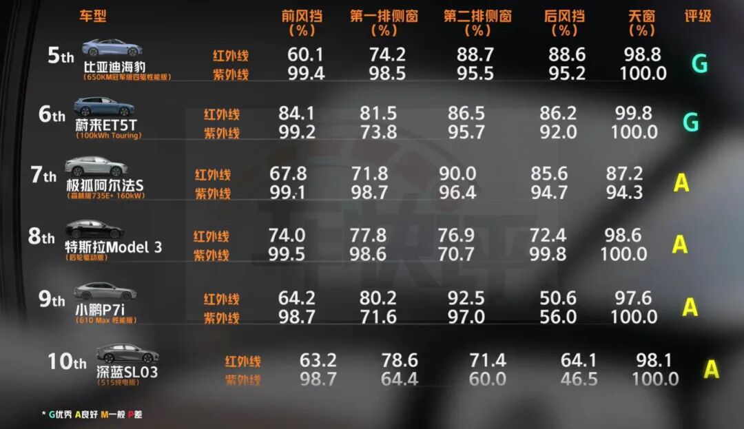 在这项测试中,表现比较好的三款车型分别是阿维塔11 2023款超长续航单电机版4座、极氪009 2023款WE版和长安Lumin 2022款 310KM蜜甜款。这三款车的续航达成率分别是76.3%、76.2%和75%。