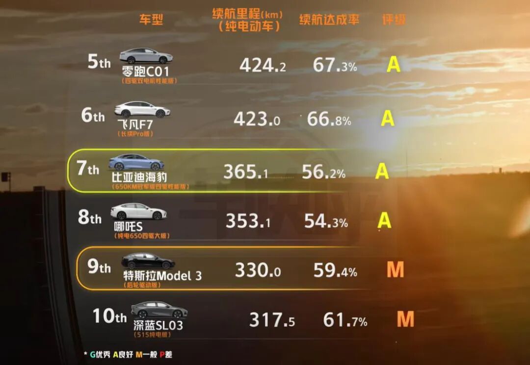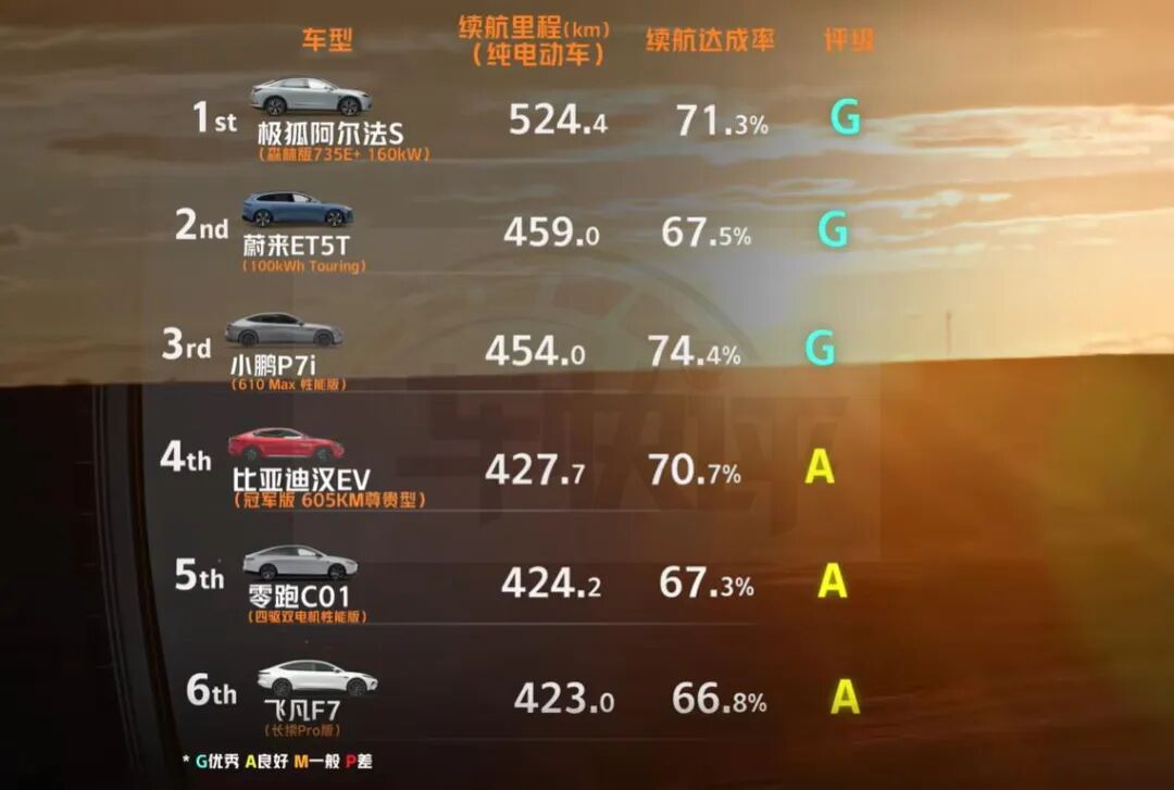 除了上述几款车型,续航达成率能够达到70%以上的车型还有小鹏P7i 2023款610 Max性能版、路特斯Eletre 2022款S+、高合HiPhi Z 2023款5座版、小鹏G9 2022款650Max性能版、极狐阿尔法S 2023款森林版 735E+160kW、比亚迪汉EV 冠军版650KM尊贵型、埃安AION S 2023款 Plus智驾版 三元锂。