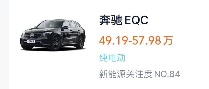 也就是说,奔驰EQC入门版车型的售价同样也不到50万元。