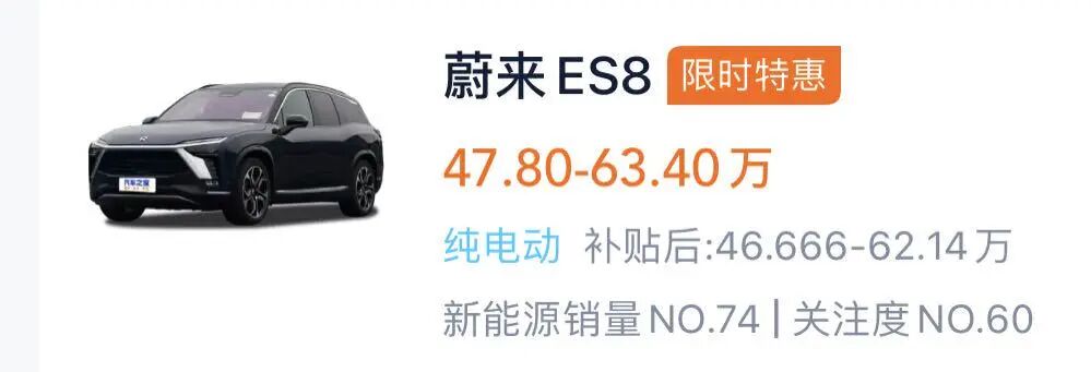 可能你会说,蔚来ES8入门版车型的售价不到50万呀?