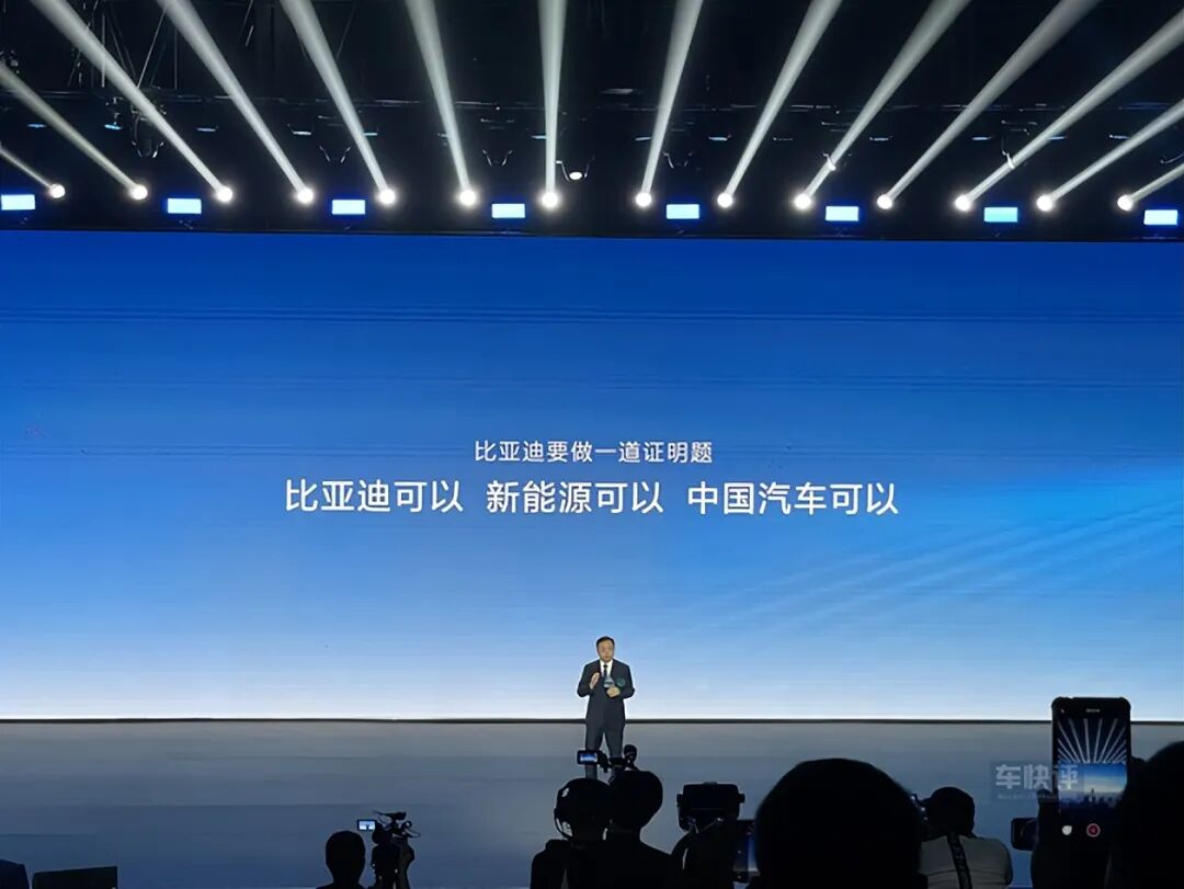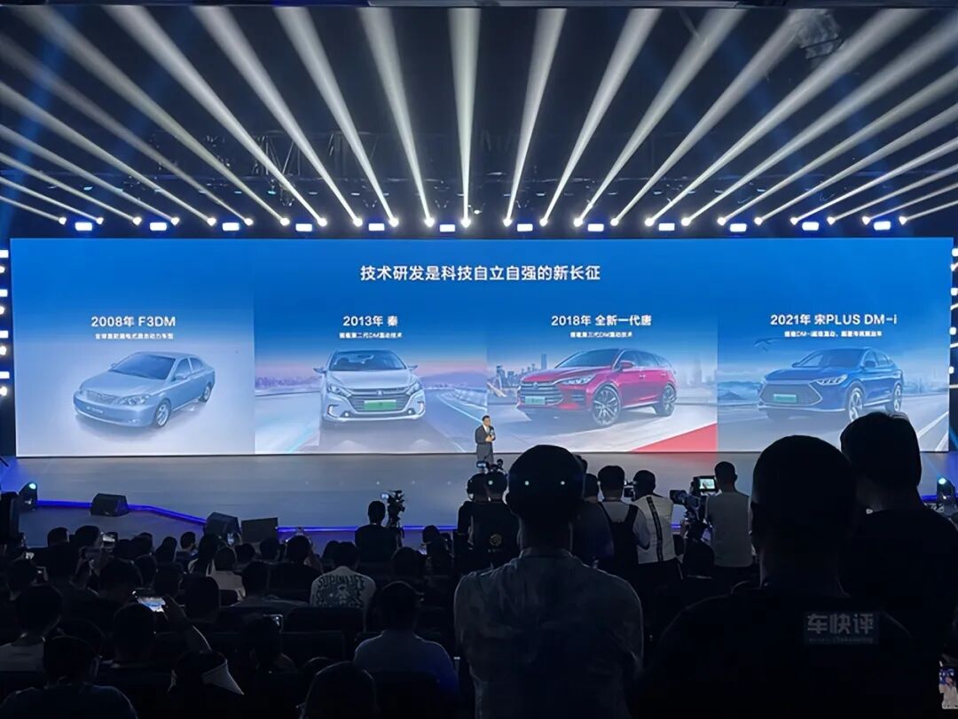 整场发布会上,比亚迪董事长王传福作为唯一一个上场致辞的比亚迪高层,他回顾了比亚迪自2008年造出全球首款插电混动车型F3DM至今,所经历的艰辛历程和冷嘲热讽。说到动情之处,还不禁潸然泪下,让在场的每一个人都为之动容。