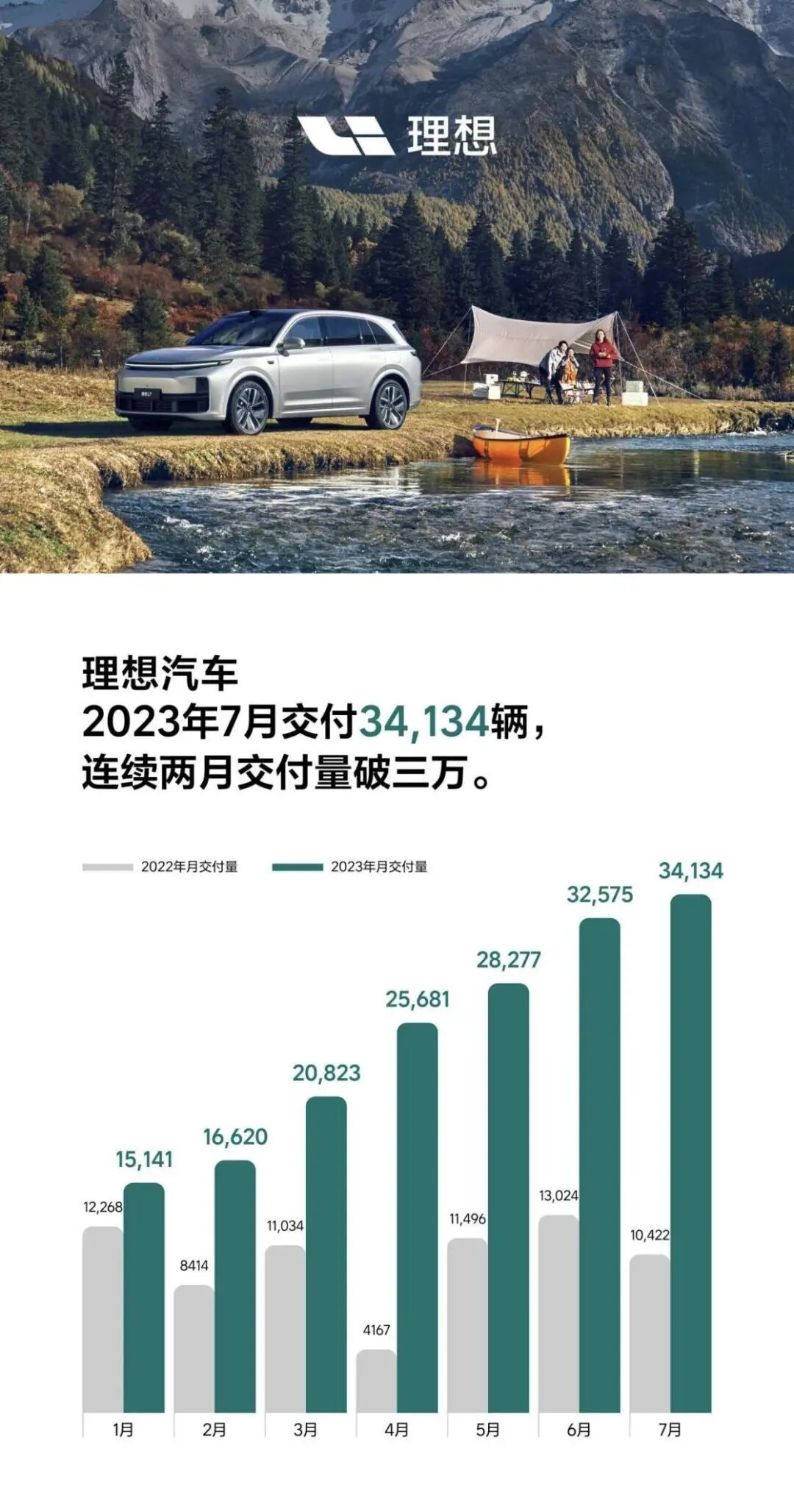 在销量上,在刚刚过去的7月理想汽车销量3.41万辆,再次创下单月交付量最高纪录,这也是理想汽车实现了连续两个月单月销量超3万的好成绩。