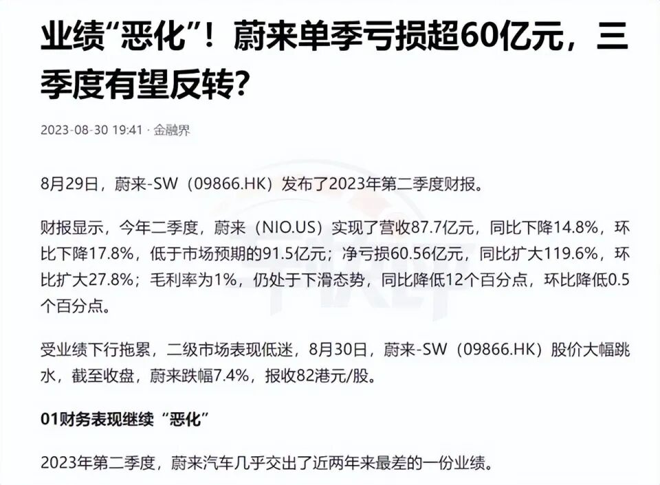 而根据之前市场预测,蔚来第二季度净亏损失53.32亿元。但如今看来,未来汽车第二季度净亏损远超市场预期。