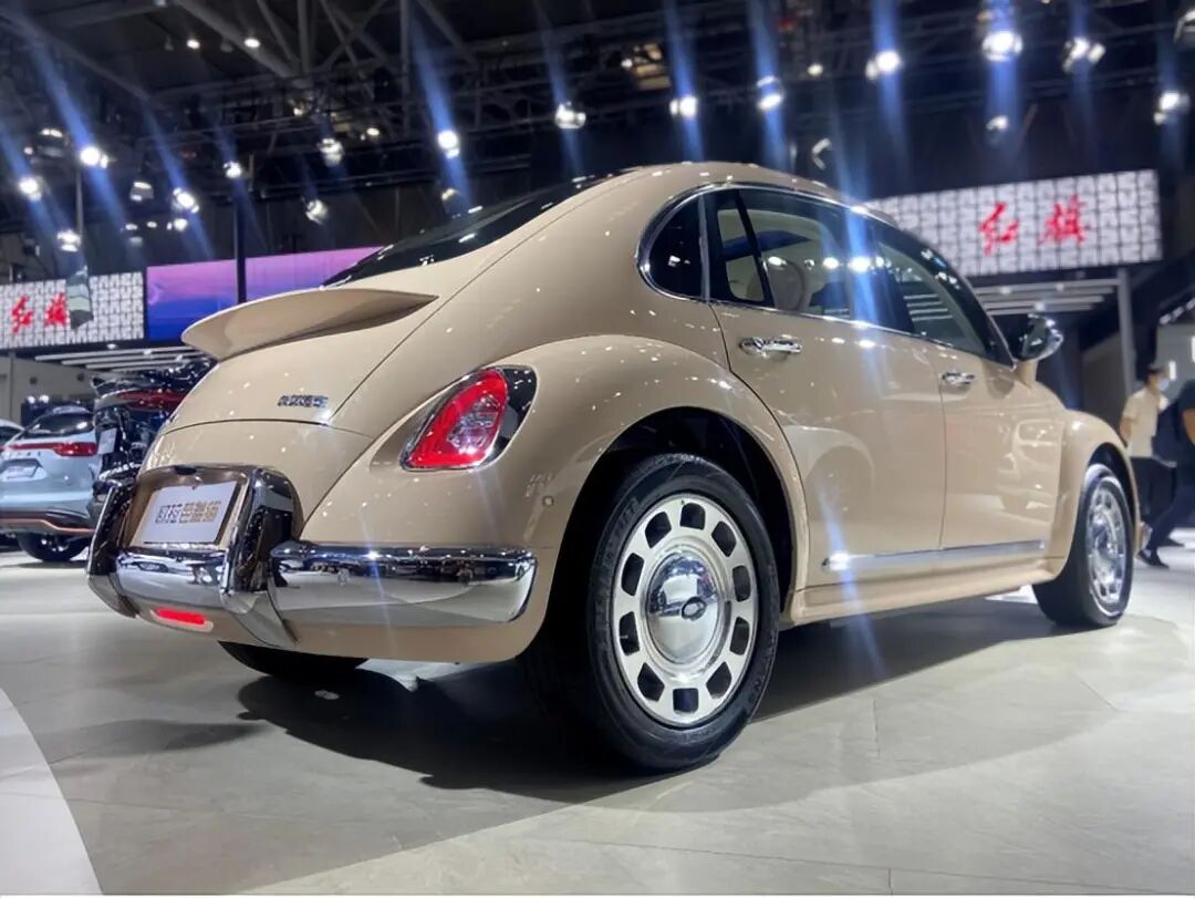 外观上,芭蕾猫采用了非常复古的设计风格。一眼看上去,和已经停产的大众甲壳虫十分的相近。长宽高分别是4401/1867/1633mm,轴距2750mm。