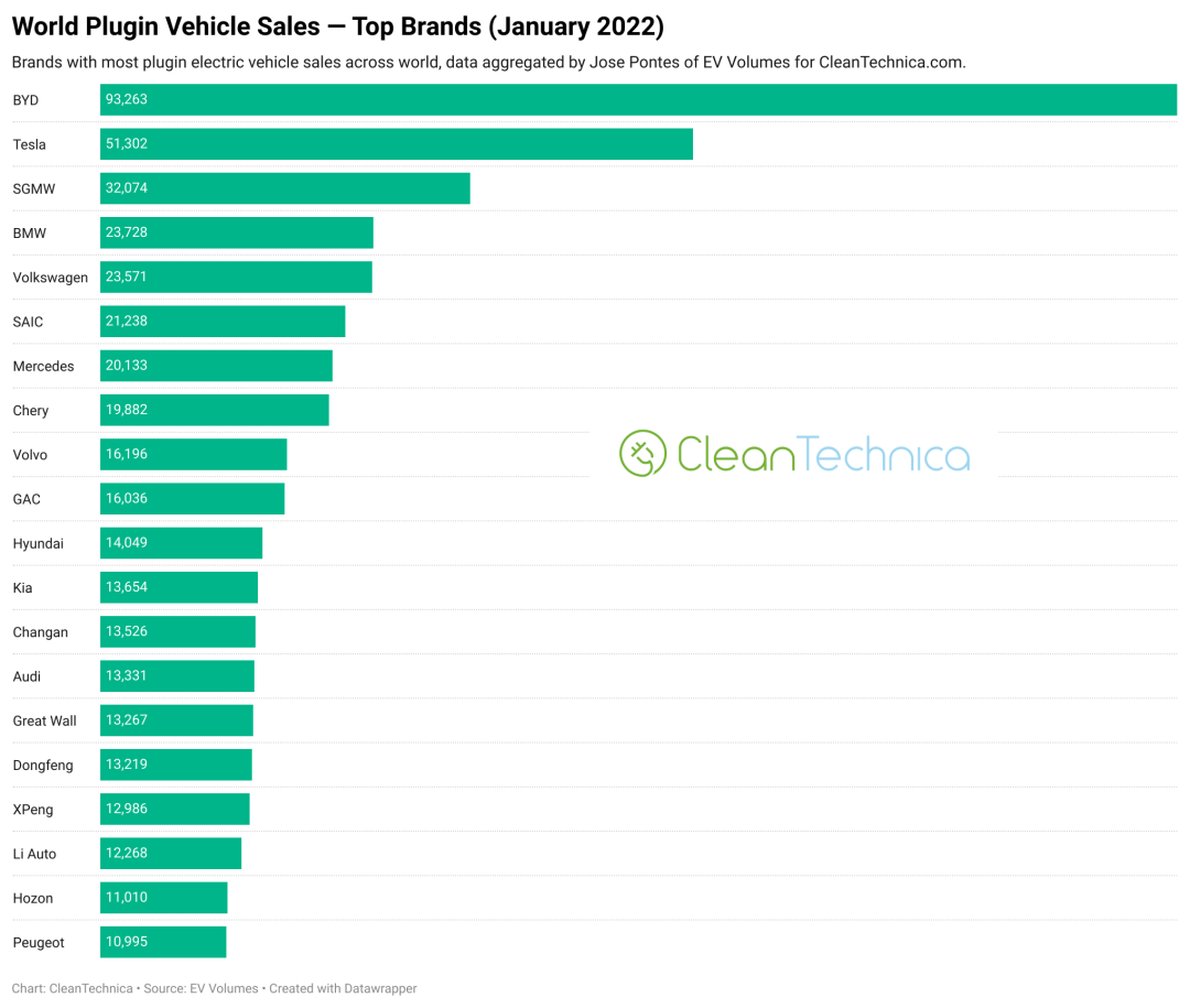 那么下面我们就来看一下,今年1月在全球范围内,各大车企在新能源车市场表现到底如何。
