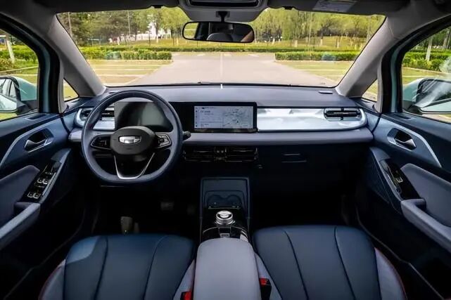 内饰的设计上,几何E同样也是焕然一新,配备有两块10.25英寸的双联屏和双拼色的三幅式多功能方向盘,并且搭载了几何汽车最新的智慧车机系统。