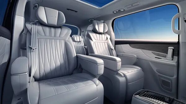 中高配车型还配备了AR实景导航、L2级辅助驾驶、车道保持、开门预警、手机无线充电、内置行车记录仪、座椅通风加热和按摩、第二排腿托调节、BOSE音响、车载冰箱以及自适应远近光灯等这些同级别燃油版MPV都少有的配置;