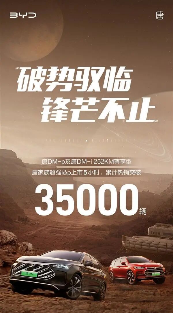 给比亚迪汽车最新发布的消息称,新车上市5小时累计销量已经突破了3.5万辆。