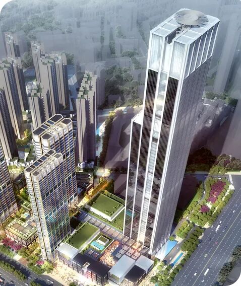 越秀•财富中心写字楼总建筑面积逾13万 ㎡,共68层,楼高330米,为武汉10大高楼之一,也是硚口区的地标性建筑。首层精装大堂挑高21米,空中大堂(37-38F)采用9m跃层设计,以360°环幕景观视野提供商务交流的城市天际景观台,彰显国际写字楼极致尊荣。
