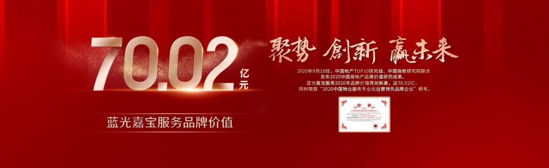 蓝光嘉宝服务(2606.HK),成立于2000年,于2019年10月在港交所成功上市,为中国西部地区首家登陆港股的物业企业。2020年,蓝光嘉宝服务行业综合实力排名全国第11位,品牌价值70.02亿元。