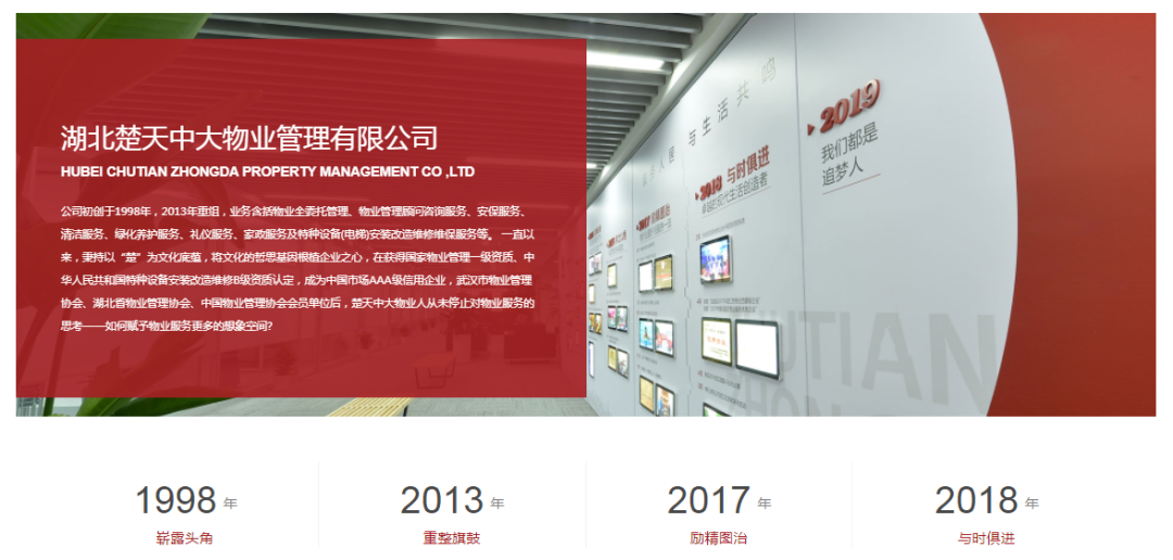 湖北楚天中大物业管理有限公司成立于1998年6月,是湖北日报传媒集团、荆州中大豪盛地产集团旗下,荆州中大豪盛置业有限公司的直属法人企业。注册资金1500万元,现为国家物业管理一级资质企业,是一家专门从事各类物业全委托管理、物业管理顾问咨询服务和特种设备安装改造维修的物业综合管理公司。公司成立以来,一直遵循“以人为本,得赢天下”的企业宗旨,发扬“勇立鸿鹄志,敢为天下先”的企业精神,树立“诚信经营,合作双赢”之经营理念,公司现有员工逾600人,并拥有一支具有丰富管理和实战经验的物业服务专业团队。现诚聘物业精英,具体要求如下: