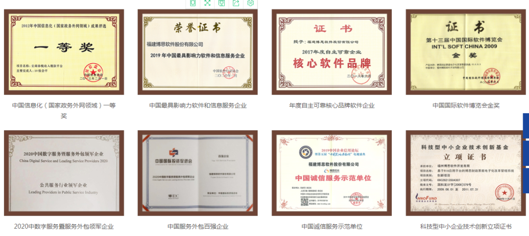 博思软件是科技部“国家火炬计划项目”和“创新基金支持项目”承担单位,总部位于福建省福州市,在福州、北京、合肥、西安设有研发中心。公司研发中心是国内非税收入信息化管理领域首家省级(企业)工程技术研究中心,自主研发了非税收入收缴电子化管理系统、财政电子票据管理系统、政府采购云平台及电子缴费公共服务平台等各类软件产品,取得软著和专利近百项。用数字科技赋能政府管理、助推企业发展,产品惠及亿万社会公众。