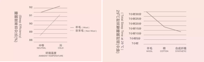 △国际羊毛局就联合悉尼大学发起的实验结果显示:即使在低温环境下,使用羊毛被的人,深度睡眠提升了25%,他们的睡眠时间更长,入睡更快,醒来频次明显减少。