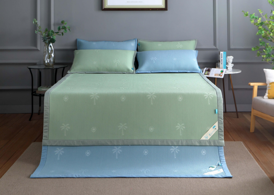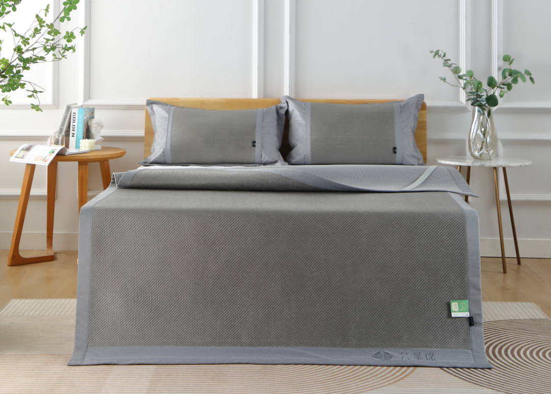 通常竹、草、藤、亚麻等材质是比较优秀的选择,它们具有细密编织和开放的纹理,所以透气性也比较好。而合成材料方面,再导热透气的再生纤维素纤维、锦纶以及乙纶等都是不错的选择,尤其是锦纶和乙纶,它们导热系数高、导热能力强,所以接触性凉感也强,可以让夏日睡眠更清爽清凉。