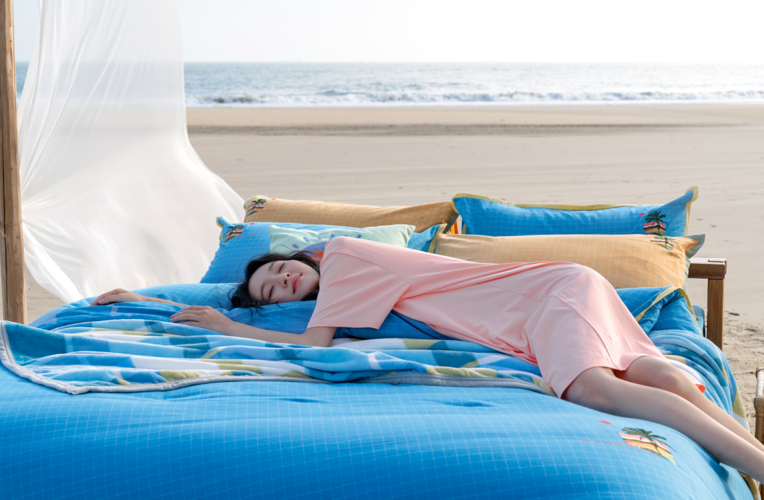 5、6月份春夏交换,南方逐渐有明显的热感,此时再使用普通纯棉套件就会过于闷热。可以使用凉感明显的莱赛尔纤维床品。莱赛尔纤维导热系数高,接触肌肤之后,能迅速将人体产生的热量、汗液吸收并挥发到空气中,给人以清凉之感,夜里更清爽舒适。