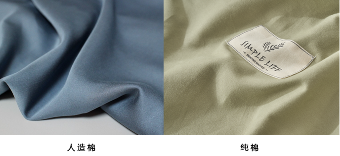 人造棉,布面平整,纱线瑕疵疵极少,无杂质,细腻平滑;而棉布则可能会有棉壳、枝干等杂质/黑点,部分面料表面会有微小绒毛,光洁度不如人造棉。