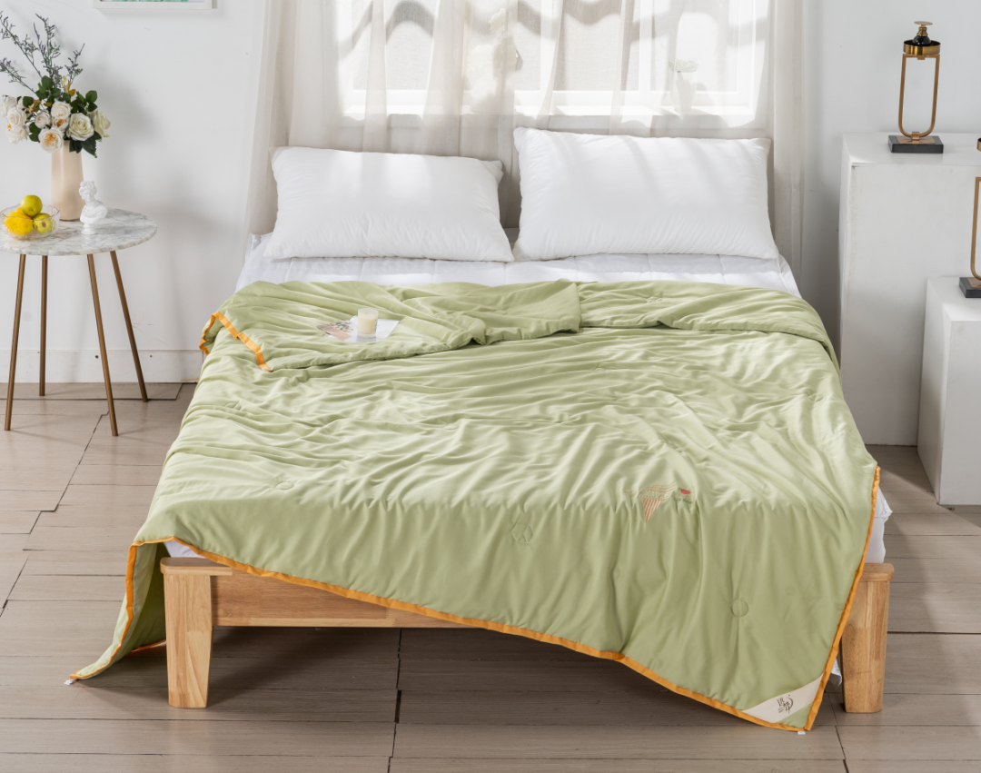 除了纯人造棉或纯棉的床品,综合各种纤维优势的混纺床品也是不错的选择。一般而言,不管是夏凉被还是四件套、凉席,如果面料成分是棉+人造棉+其他,人造棉含量在50%以上,手感、睡感通常不会太差。