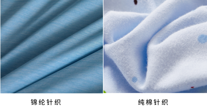 安全系数高:针织棉比梭织面料少了几道染整工艺,所以针织棉通常都能做到A类安全等级,常被用于婴幼儿床品衣物等。