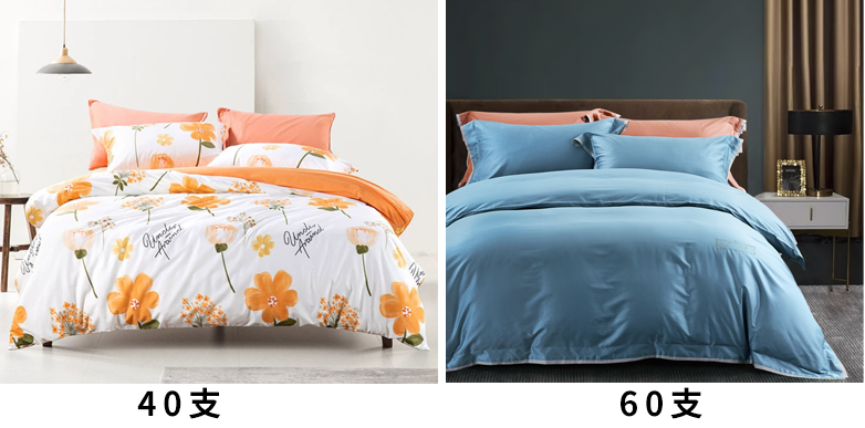 因此市面上色彩多样且鲜艳的四件套一般都是40支及40支以下,60支以上高支高密的四件套基本都是以纯色为主,印花占比很少,最多就是加上少量的提花和刺绣以增加产品款式的丰富性。