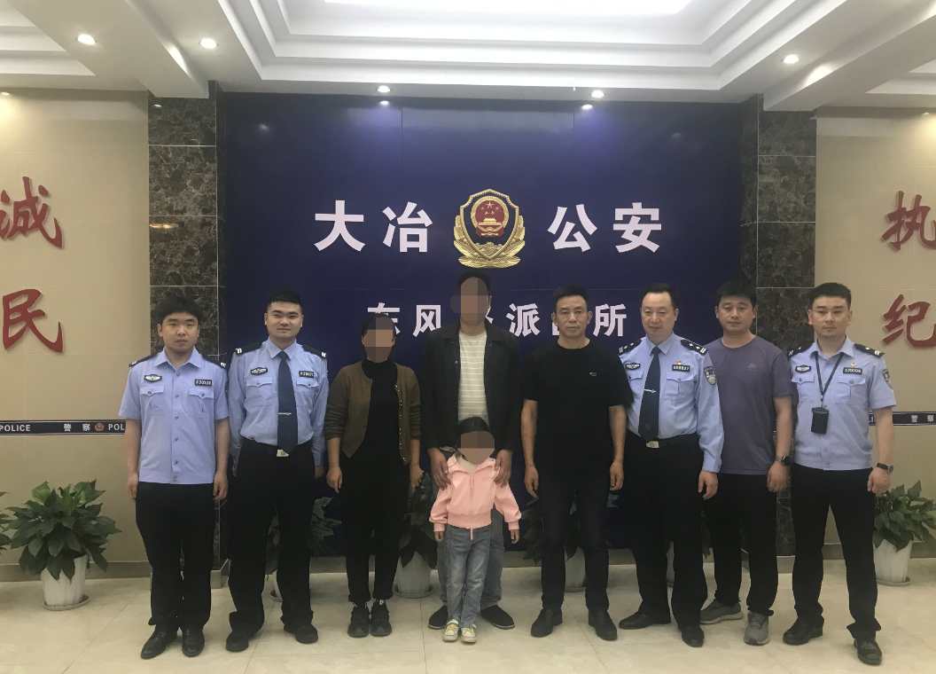 找到耳蜗后,妮妮家人和民警合影。通讯员吴谦 摄
