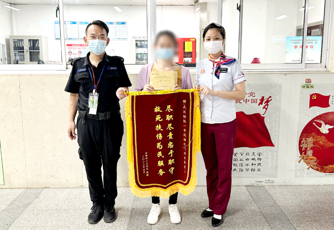 操女士帮王老先生送锦旗到车站。通讯员供图