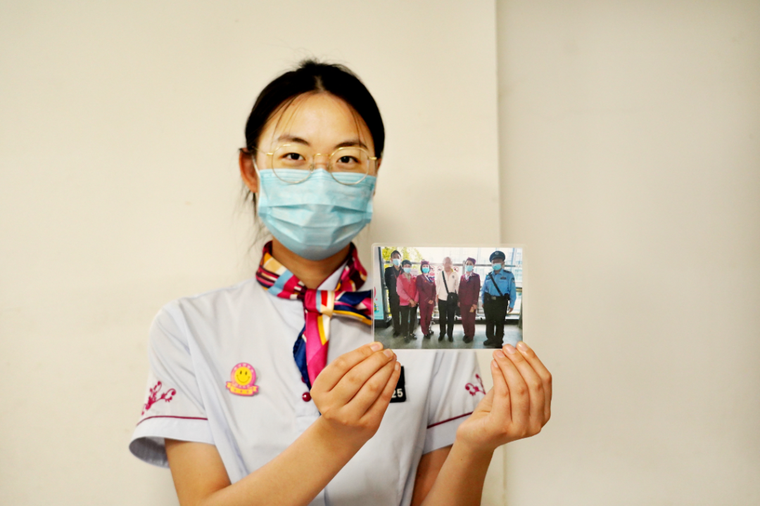 车站工作人员展示王老先生洗出来的合影照片。通讯员供图