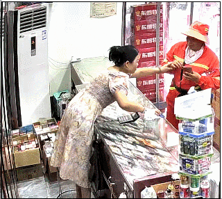 中间红色招牌店铺为爱心老板娘的店。记者陶常宁 摄
