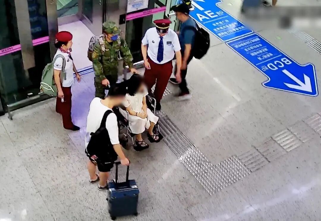 军医和地铁工作人员推着乘客前往车站管理区。通讯员供图