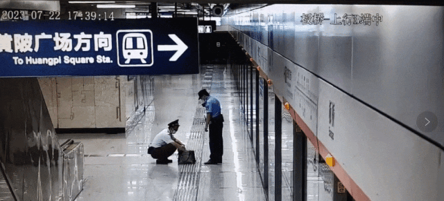 板桥站值班辅警朱雷涛前往站台