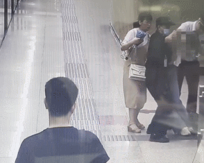 向站台上的工作人员高声呼喊: