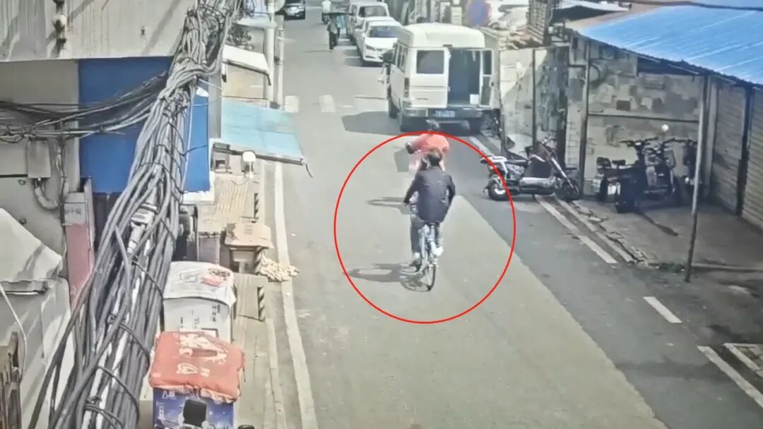 嫌疑人骑着自行车逃跑。通讯员罗维舟 摄