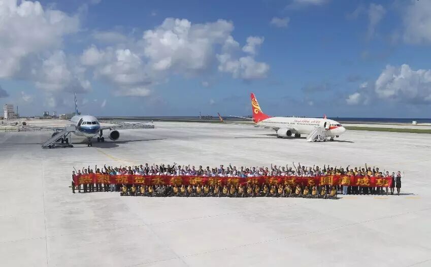 从一块小礁石,到小木屋,铁皮高脚屋,到钢筋水泥建筑……填海一年,中国变魔术似地变出了近3平方公里的土地!岛上有大型机场,有港口,甚至还有足球场!
