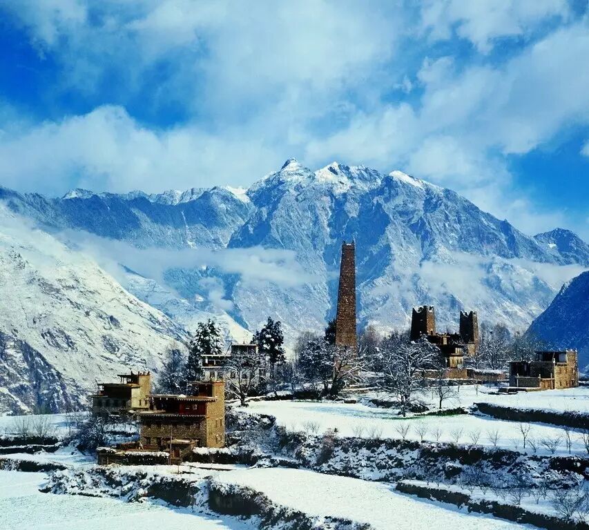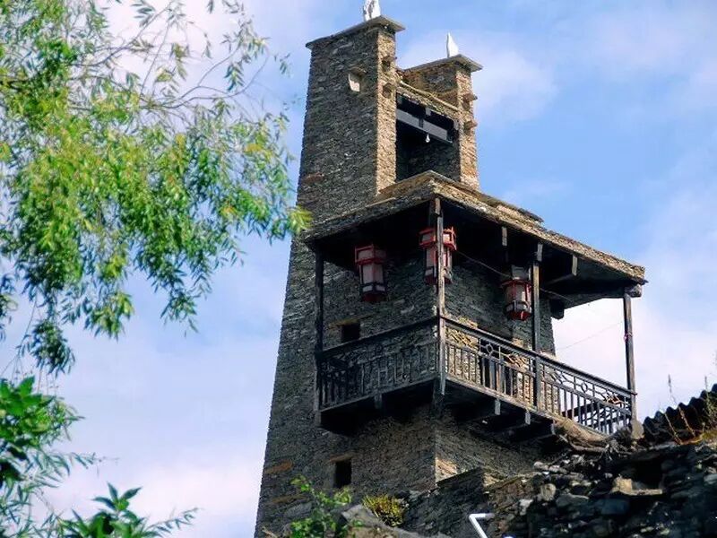 羌族民居和碉楼。羌族聚居区处于青藏高原的东部边缘,这里山脉重重,地势陡峭。羌寨一般建在高半山,所以羌族被称为“云朵上的民族”。富有特色的羌族石碉房、碉楼如明珠万斛般散落在羌山的怀抱里。最有特色的是甘孜州丹巴县的碉楼。