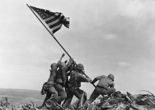 ↑经典的硫磺岛插旗照片,很多精神是东西方共通的