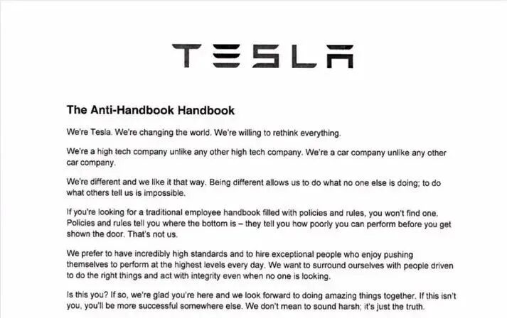 “我们是特斯拉,我们正在改变世界,我们愿意重新思考一切。”