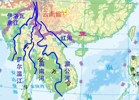 澜沧江(2139KM),流到东南亚叫湄公河(全长4908KM,世界排名第十),云南境内1247KM,湄公河三角洲4.4万KM²,世界第三!(珠三角哭晕,韩国无法想象
