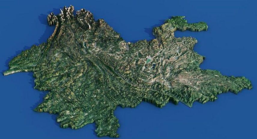 ▲云南地形图和行政区图