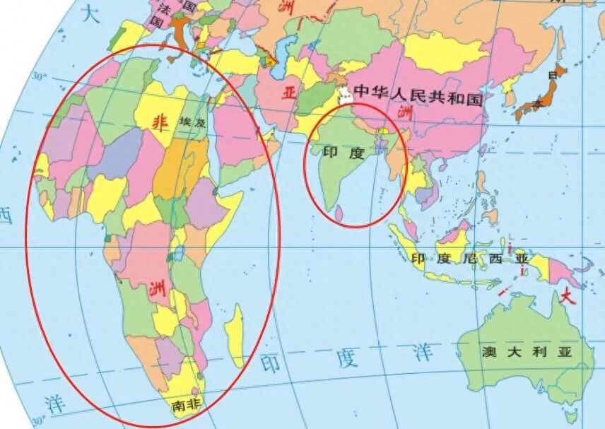 非洲面积约3020万km²,印度的面积也差不多,就少了一个0而已。在世界地图上看,印度就是个小号的“非洲”。