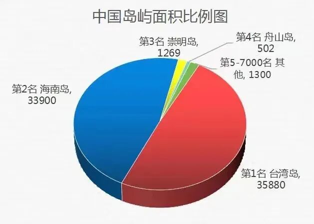 还有一个重要的事实,我国两大岛屿台湾岛和海南岛,和其他岛屿比大小,非常惊人!这两个岛的面积,占了我国全部岛屿加起来的95%还多!第三名的岛屿崇明岛,比起这俩个,面积是断崖式下跌。