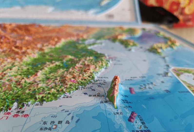 再说一下海拔!台湾岛的高度,在世界几十万个岛屿中,排名第4位!!海拔超过3000米的山峰有268座,最高点玉山主峰海拔3952米,是我国中部、东部所有省份当中的最高峰!除了青藏高原及其延伸地带,我国其他山都没有那么高。立体地图上的台湾岛是这个样子,非常挺拔、突兀↓