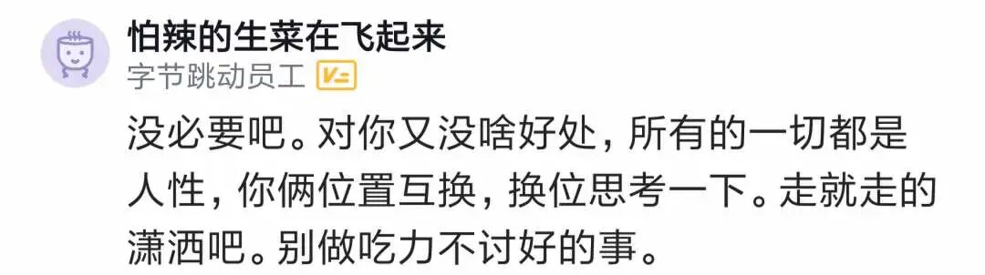 职场圈子很小,今天在这里相遇,说不定明天在哪里相遇了。都要离开了,好聚好散,留个好印象,万一以后还有合作的地方呢?以前有个领导出去了,找的员工全部是熟人,有些人后来就发展不错。