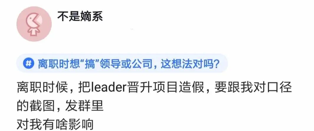 如果离职了,确实没啥影响,如果不去大公司,去一般公司,背调都省了的公司,那随便操作。如果还是想去大公司,背调严格的公司,可能会影响。嘴巴越松的人,迟早会遇到问题。