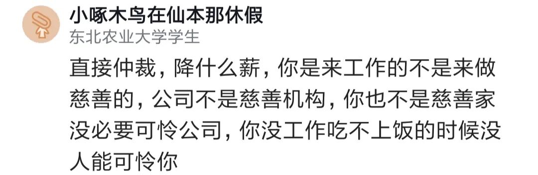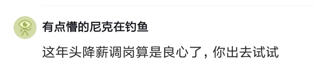 特殊时期,有些东西是会站在企业这边的,大家都不好了,你让企业怎么办。降薪和转岗意味着还有工作,这个环境不裁你,就很友好了。有个朋友谈的工资不错,但转正降了好多,不接受也不行,外面根本没机会。失业跟降薪调岗比,哪个更重要?只能说你不满意,就去市场看看。