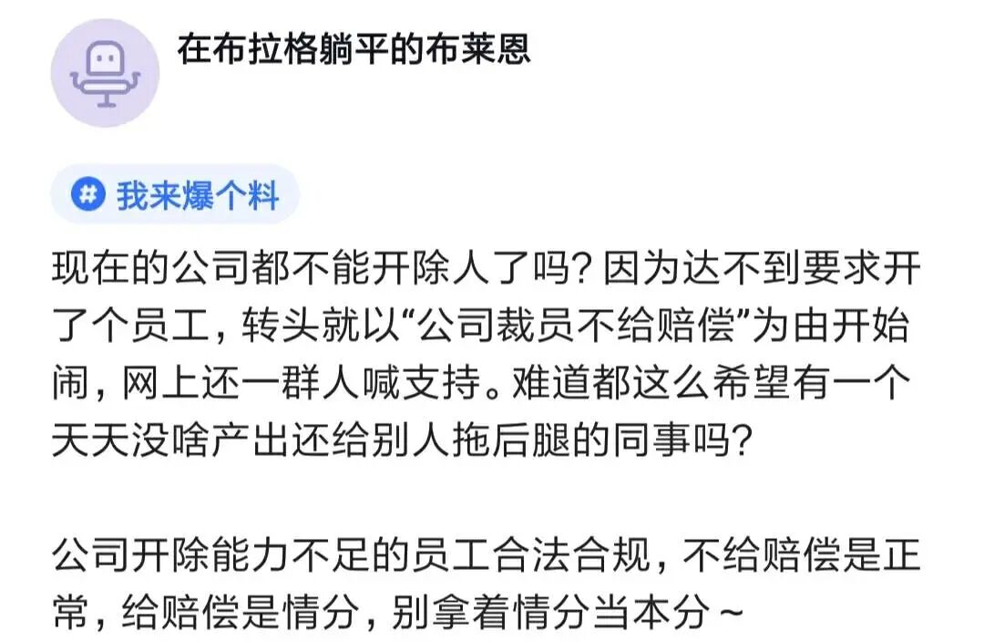 企业发展有问题了,降本缩员,也没错,但合理的赔偿就行了。如果公司觉得员工产出不够,工作不饱和,达不到要求,那是怎么转正的,试用期就该辞退,等到都是老员工了,才说不行,这就是公司的问题了。
