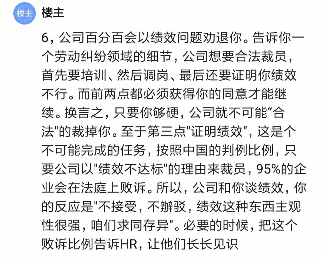 对于大公司,这些知识,确实足够了,毕竟是过来人真实实践过的。越大的公司,越遵守相关的法律法规,让你走,就会给你合理的补偿,维权的都是哪些公司,可以自己去记录,多了解,避免踩坑。